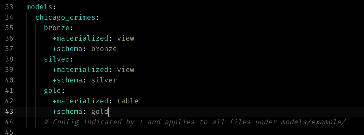 Edit the file based on the picture below (if you are familiar with YAML and how it interacts with dbt sql files, you can customize this file to your liking).